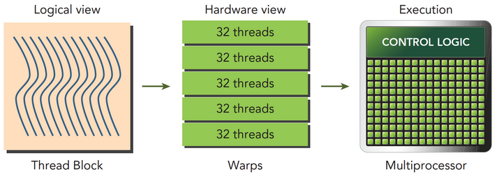 CUDA 是 SIMT(Single Instruction, Multi Threads)架构,多个线程执行同一份代码,每个线程拥有独立的寄存器、程序计数器和状态,可根据自身数据条件(如分支判断)选择执行或跳过指令。